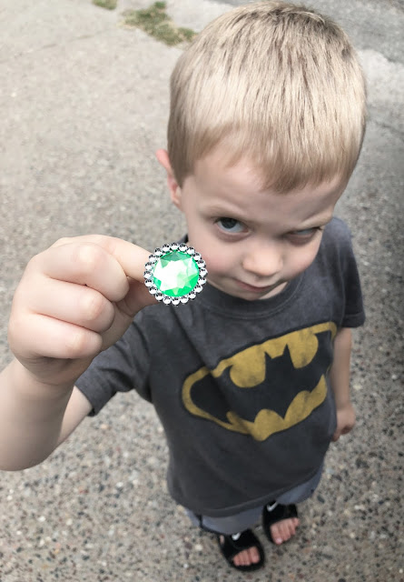 I always get embarrassed when my kids are able to pick out a prize because they always want to take more than one. Is it really my fault though when I tell them no but then everyone is always so nice and always goes, oh it's fine! Well now you won't think it's fine, because pretty soon you'll have a four-year old take a whole tray of rings and think it's ONE prize. Apparently one ring isn't as cool as a whole tray either. This little man was clearly not impressed!